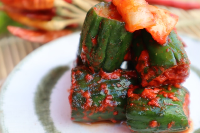新鮮なきゅうりを特製タレで漬け込んだオイキムチ。シャキシャキの食感とピリッとした辛さが絶妙に調和し、さっぱりとした風味が食欲をそそります。ご飯のお供やおつまみに最適な、夏にぴったりの一品です。 ⭐️商品説明 〈原材料〉 ・胡瓜(国産)/唐辛子/ニンニク/パプリカ粉末/アミ塩辛/砂糖/梨ジュース/パイナップルシロップ漬け/みりん/しょうが/玉ねぎ/かたくちいわし/食塩/魚介だし/調味料(アミノ酸等)/香料/酸味料(一部にエビ・イカ・さばを含む) 〈賞味期限〉 ・商品到着後より3日 〈保存方法〉 ・冷蔵庫にて保存してください(10℃以下推奨)。 ・開封後はなるべく早めにお召し上がりください。 〈内容量〉 ・170g ⭐️注意事項 ・開封後は冷蔵庫にて保存し、なるべく早めにお召し上がりください。 ・発酵が進むとガスが発生するため、容器をしっかりと閉めて保存してください。 ・辛さに敏感な方や小さなお子様が召し上がる場合は、ご注意ください。 ⭐️お届けについて ・発送はクール便にて行います。発送からお手元に届くまで、鮮度を保つよう配慮しております。 ・発送日からお届けまでの日数は、地域によって異なる場合がありますので、予めご了承ください。(目安:決済完了後1日〜1週間程度) ⭐️キャンセル・返品について ・お客様の都合によるキャンセル・返品はお受けしておりません。予めご了承ください。 本格的な自家製キムチを、ぜひご家庭でお楽しみください。皆様のご注文を心よりお待ちしております。